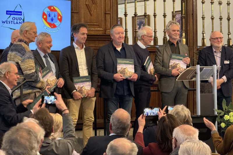 Presentatie Kastelenboek Westland en Midden-Delfland15 november 2025. Terwijl op het Wilhelminaplein in Naaldwijk de intocht van Sinterklaas luidruchtig werd gevierd stroomde de Oude Kerk vol met in geschiedenis geïnteresseerden voor de presentatie van het Kastelenboek: "Kastelen en adellijke huizen in het Westland en Midden-Delfland". De twee wethouders van cultuur van de gemeenten Westland, Carlieke van Staalduinen, en Midden-Delfland, Melanie Oderwald-Ruijsbroek, ontvingen een 'eerste exemplaar'. Voorafgaand aan de boekuitreikingen gaven vier auteurs, Jacques Moerman, Harry Groenewegen, Ton Immerzeel en Adri van Vliet, korte presentaties over onderwerpen uit het boek. Na afloop kon men de bestelde boeken ophalen, of een boek aanschaffen (voor het laatst voor de intekenprijs). Waar te koopHet kastelenboek is uitsluitend te koop in het Westlands Museum in Honselersdijk en Museum Het Tramstation in Schipluiden (dus niet in de boekhandel) voor de prijs van € 30,-. Twee tentoonstellingenVanaf 22 november 2025 tot eind mei 2026 zijn er twee tentoonstellingen over de Middeleeuwse kastelen van Westland en Midden-Delfland in het Westlands Museum en Museum Het Tramstation. Lezing kastelenOp dinsdag 25 november 2025 houden Harry Groenewegen en Jacques Moerman namens de Historische Vereniging Oud-Schipluiden een lezing over de Kastelen en adellijke huizen in het Westland en Midden-Delfland. Zie hier voor meer informatie. Boek: Kastelen van het Westland en Midden-DelflandOp 15 november verschijnt een uitgebreid en rijk geïllustreerd boek over dit onderwerp. Het bevat vier inleidende hoofdstukken: over het ontstaan van het landschap, de kasteeltypen, het leenstelsel/bestuur en de Hoekse en Kabeljauwse twisten. Er worden 24 kastelen en adellijke huizen besproken, waaronder 12 in Midden-Delfland. Het boek telt circa 344 pagina's! Het is een gezamenlijke uitgave van het Genootschap Oud-Westland en de Historische Vereniging Oud-Schipluiden. Liefhebbers die willen intekenen op dit fraaie boek worden gevraagd € 25,- over te maken op bankrekening IBAN-nr: NL30RABO0358261546 t.n.v. Historische Vereniging Oud-Schipluiden. Vermeld hierbij: Kastelenboek, en bovendien: uw adres en e-mail. Na half november is het boek voor 30 euro te koop bij het Westlands Museum en Museum Het Tramstation (dus niet in de boekhandel, vandaar de vriendelijke prijs). Vanaf half november vinden tentoonstellingen over dit onderwerp plaats in het Westlands Museum en Museum Het Tramstation. Ook volgen er diverse lezingen over kastelen en adellijke huizen. Meer informatie hierover komt later. Aangepast: 21-11-2025 23:44:39 |