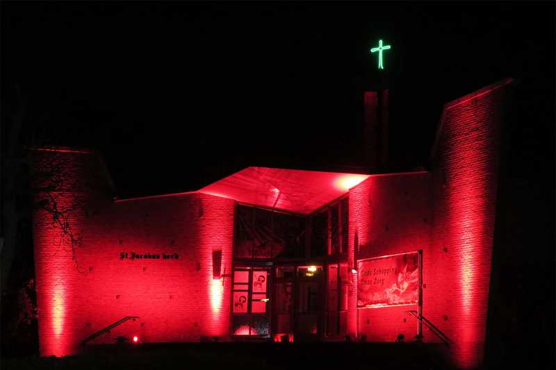 Red Wednesday: aandacht voor de vervolging van gelovigen wereldwijd19 november 2025: De St. Jacobus kerk in Schipluiden was deze avond gehuld is rood licht. Kerken worden rood verlicht tijdens de jaarlijkse actie Red Wednesday om aandacht te vragen voor de vervolging van christenen en andere gelovigen wereldwijd. De rode verlichting symboliseert het bloed van martelaren en het lijden van gelovigen, die met dit initiatief van de organisatie Kerk in Nood worden herdacht en gesteund. Deze actie maakt deel uit van de Red Week.